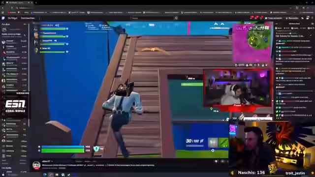 00:14:15Der Streamer und seine Jungs spielen verschiedene Games wie Phasmophobia und Fortnite. Beim Spielen von Fortnite beschreibt er, wie sie von Gegnern attackiert wurden und wie wichtig Strategie und Teamwork sind. Er äußert Bewunderung für Eli, der als großer Streamer erfolgreich ist, aber auch Gamer-Stolz aufgeben muss, da er seine Identity ausblenden muss. Weiterhin wird über diverse Spiele und deren Strategien gesprochen, wobei er auch besondere Maps erwähnt, die er erstellt hat.