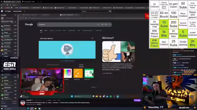 00:04:50Der Stream beginnt mit einer Begrüßung der Zuschauer. Der Streamer bemerkt, dass Eli live spielt und möchte zuschauen, wird aber blockiert, was ihm Verwunderung bereitet. Er diskutiert mögliche Gründe und äußert sich überrascht über diese Möglichkeit auf Twitch. Gleichzeitig erwähnt er, dass er seinen Mod-Status benötigt, um im Chat schreiben zu können, und plant, später bei Merz reinzuschauen, während die anderen Streamer eine Münzwurf-Challenge veranstalten.