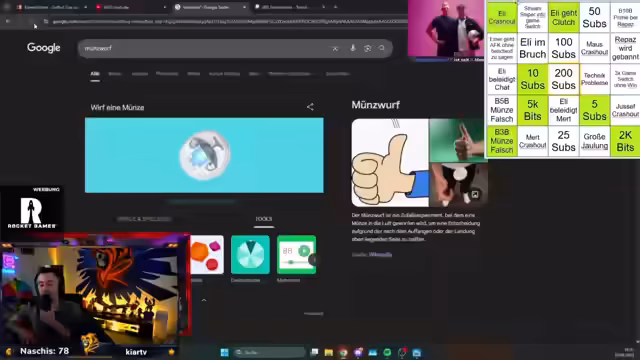11:16:13Der Streamer beschreibt eine extrem schwierige Herausforderung: eine Stream Sniper First Try Münzwurf Challenge, die er als praktisch unmäßig ansieht. Er erklärt das Konzept und warum es so herausfordernd ist, insbesondere mit der Notwendigkeit, alle Wins und Münzwürfe in einem durchgehenden Ablauf zu erzielen. Dabei betont er, dass solche Challenges primär als Unterhaltung für Zuschauer gedacht sind, aber nicht unbedingt für die Spieler selbst wertvoll sind.