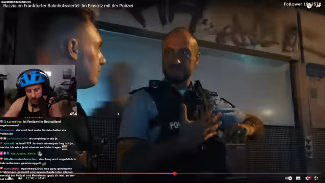 01:47:58Im Anschluss geht der Streamer mit der Polizei auf Großkontrollen im Bahnhofsviertel. Dabei werden mehrere Personen kontrolliert, wobei ein Messer und Drogen sichergestellt werden. Der Streamer erhält eine schusssichere Weste und begleitet die Beamten bei ihrer Arbeit, die darauf abzielt, Präsenz zu zeigen und die Szene zu verunsichern. Die aufwendige Operation mit 150 Polizisten wird als notwendig für das Sicherheitsgefühl der Bevölkerung dargestellt, auch wenn der Streamer die Effektivität im Kampf gegen die Drogenkriminalität hinterfragt.