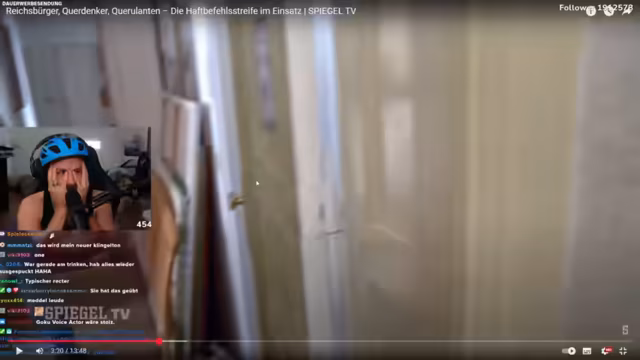 02:09:38Der Streamer begleitet eine Haftbefehlstreife, die eine 64-jährige Reichsbürgerin aufsucht. Diese verweigert die Zusammenarbeit, erkennt den Staat und die Polizei nicht an und redet sich in Rage. Die Frau, die sich nach eigener Angabe im Anime-Arc befindet, verspottet die Beamten und wirft ihnen vor, keine hoheitlichen Rechte zu haben. Die Beamten müssen die Wohnung durchsuchen, um eine Person festzunehmen, während der Streamer die skurrile und emotional aufgeladene Situation kommentiert.
