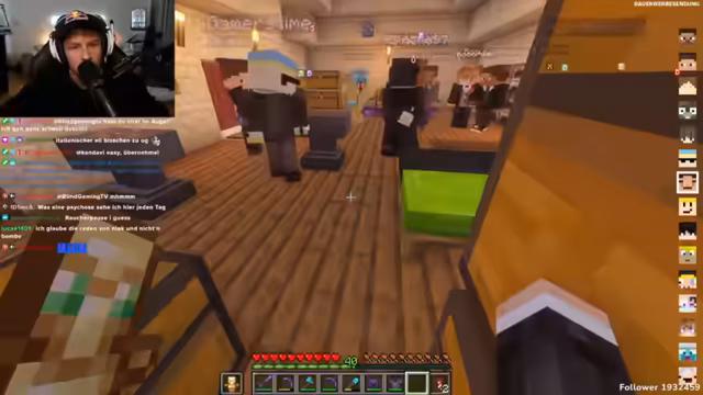 00:40:04Der Streamer, der sich selbst humorvoll als 'Supreme Rewi' bezeichnet, überprüft die Online-Spieler auf dem Minecraft-Server. Er interagiert mit 'Uli' und 'G-Time' und spricht vergangene Ereignisse an, wie einen 'Rave', der off-stream stattfand und ihn genervt hat, da dabei seine Karottenfarm und Teppiche beschädigt wurden. Er scherzt über 'Urotox', der angeblich immer übertreibt und sich 'zuknallt'. G-Time berichtet über seine Fortschritte im Nether, wo er Materialien für Säulen sammelt, was der Streamer lobt. Die Interaktionen sind geprägt von humorvollen Sticheleien und freundschaftlichen Neckereien, die die lockere Atmosphäre des Streams unterstreichen. Der Streamer betont, dass heute ein ruhiger Tag in Minecraft geplant ist, im Gegensatz zu den chaotischen Ereignissen der Vergangenheit. Er zeigt sich erfreut über die Fortschritte im Spiel und die Zusammenarbeit mit seinen Mitspielern, während er weiterhin die humorvolle Dynamik mit seiner Community pflegt.