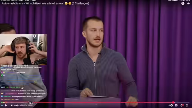 02:19:49Zunächst wird auf eine Blitzer-App reagiert, wobei die rechtliche Problematik der Nutzung solcher Apps in Deutschland angesprochen wird. Anschließend werden Ausschnitte von Gaming-Fails gezeigt und humorvoll kommentiert. Ein Clip von einem Ninja Warrior ähnlichen Event wird analysiert, wobei insbesondere das Scheitern an bestimmten Hindernissen und die Reaktionen darauf im Vordergrund stehen. Abschließend wird kurz eine Campertour mit Knossi erwähnt, die dazu inspirierte, sich einen eigenen Camper zuzulegen. Es wird die Ankunft an einem Ort gezeigt und kurz mit anderen Personen interagiert. Es wird eine AMG-Vape erwähnt und sich darüber lustig gemacht. Monte wird zitiert, wie wichtig es ist, nach Fotos zu fragen. Es wird sich über Nico lustig gemacht, der gefragt hat, wo man bleibt. Lennart macht Eigenwerbung für seinen Stream und es wird sich darüber amüsiert.