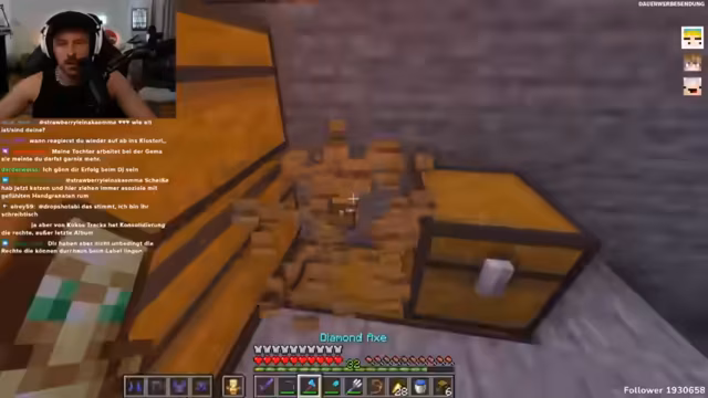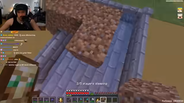 06:43:01Ein neuer Tag bricht an und der Countdown für den anstehenden Rave läuft, der in 35 Minuten beginnt. Während die Vorfreude im Chat geteilt wird, äußert der Streamer gemischte Gefühle: Er ist wegen der Kopfschmerzen angespannt und der bevorstehenden Elektromusik nicht aufgeregt. Gleichzeitig wird die Basis weiter ausgebaut und technische Probleme wie ein Redstone-System für Falltüren optimiert, um Zombies fernzuhalten. Parallel dazu werden Villager für Karotten- und Eisen-Farms eingerichtet, um den Progress voranzutreiben.