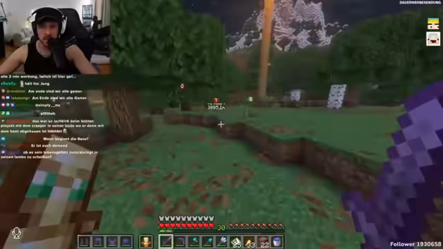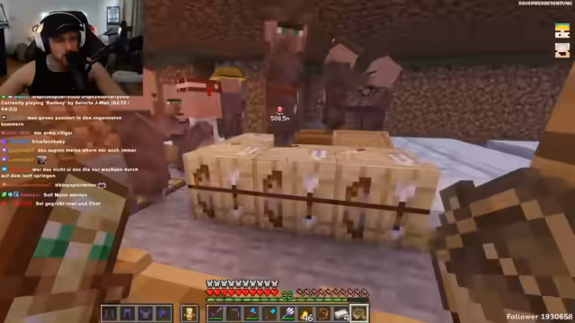 01:47:26Nachdem die Farm-Probleme kurzzeitig ruhten, weist der Streamer erneut auf den bevorstehenden Rave am Abend hin. Die Spannung aus den früheren Villager-Interaktionen spitzt sich zu, als der Streamer bei einem emotionalen Ausbruch die Dorfbewohner in der stärksten Form beleidigt. Diese Phase endet abrupt mit einem Minecraft-Crash. Nach dem Restart wird ein Gespräch mit dem Zuschauer Hugo geführt, der den rauen Umgangston kommentiert, was den Streamer zu einer Art Rechtfertigung und Reflektion über sein Verhalten veranlasst.