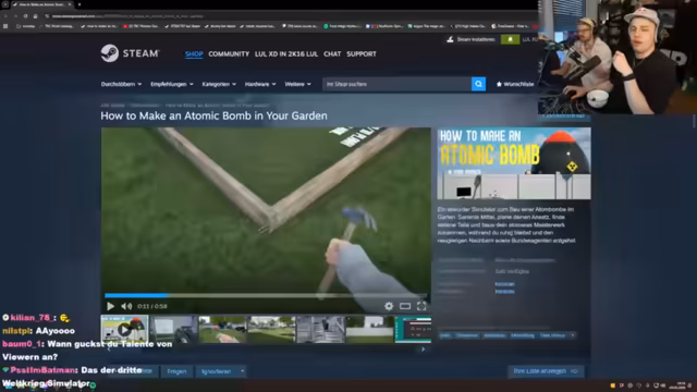00:16:57Die Streamer beschließen, auf einen viralen Swinger-Club-Clip zu reagieren, obwohl sie zunächst Bedenken wegen der zeitlichen Restriktionen haben. Es entsteht eine hitzige Debatte über den Inhalt des Videos und die Authentizität des dort porträtierten Berufs. Der Streamer willigt schließlich in die Reaktion ein, da es sich um einen "normalen Stream" handelt, und plant, den Clip mit seinem Co-Host anzusehen. Der Chat wird aktiv in die Diskussion eingebunden und kommentiert das Verhalten des Streamers.