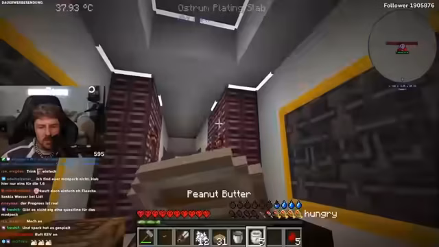 02:57:16Der Fokus verlagert sich zusehends auf die dringenden Probleme von Hunger und Durst. Das gesamte Gameplay ist geprägt vom ständigen Sammeln und Verarbeiten von Nahrungsmitteln wie Erdnussbutter und Brot. Die schiere Menge an benötigtem Essen und Trinken wird als überwältigend und frustrierend empfunden. Der Streamer empfindet die Mechanik als 'verficktes Feeder-Mod-Pack' und stellt fest, dass es kaum eine Möglichkeit gibt, langanhaltende Sättigung zu erreichen, was den Fortschritt erheblich bremst.