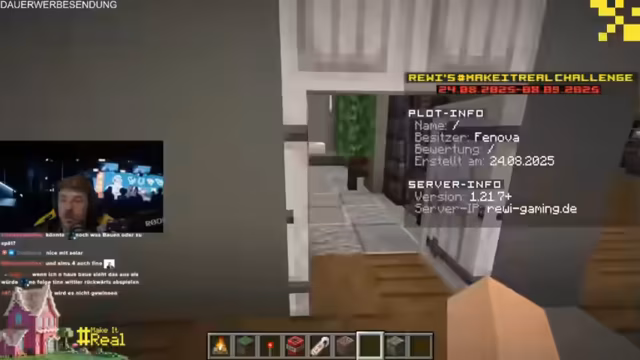 02:00:07Im Fokus des Streams steht die Make-it-real-Challenge, bei der mit einem Preisgeld von 17.500 Euro in Minecraft und anderen Spielen Traumhäuser digital gebaut werden können. Der Streamer betont den beeindruckenden Umfang der Beteiligung mit bereits rund 600 Grundstücken und die verbleibende Frist bis zum 8. September. Teilnehmer werden aufgerufen, über den Discord-Server beizutreten und ihre Kreationen einzureichen. Die Challenge zeichnet sich durch kreative Freiheit aus, da die Größe des Projekts und die verwendeten Mods keine Rolle spielen.