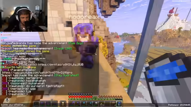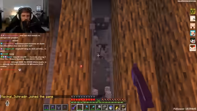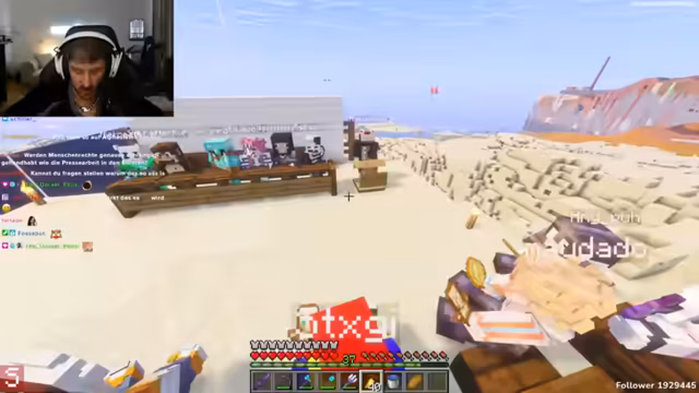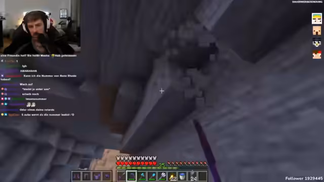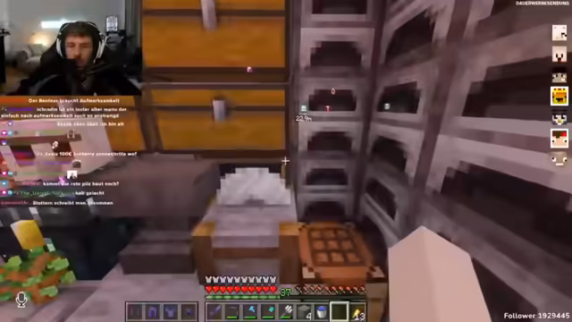00:35:55Der Streamer bittet Karawas, Space mit X in Minecraft zu enthaupten, da dieser seine Basis zu nahe baut und persönliche Grenzen nicht respektiert. Es wird humorvoll angedroht, private Bilder von Stegi aus Thailand zu leaken, falls dieser nicht kooperiert. Chef Strobel wird erneut hinzugezogen, um die Eisenfarm zu bauen, da er als Experte auf diesem Gebiet gilt. Chef Strobel beklagt sich über die Schwierigkeit, bestimmte Blöcke für die Loilmap zu farmen. Der Streamer macht ihm ein Angebot, eine Pause vom Farmen zu machen und stattdessen bei der Trading Hall und Eisenfarm zu helfen. Chef Strobel stimmt zu, nachdem er seine aktuelle Aufgabe im Schneebiom beendet hat. Der Streamer spricht über seine Essgewohnheiten und den Wunsch, 50 Kilo zuzunehmen und fett zu werden, um dann an einem Herzinfarkt zu sterben – als 'geilen Content'. Es wird ein Deal mit Niki Stemmler vorgeschlagen, bei dem er ein Bild seiner Sacknaht gegen 200 Kupferbarren tauschen soll. Es gibt eine Diskussion über einen Shitstorm und die Notwendigkeit, Frieden zu schließen und die Wogen zu glätten, insbesondere mit Max.