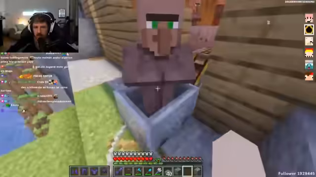 01:41:01Die Diskussion dreht sich um die Anzahl der benötigten Villager für die Eisenproduktion und Verzauberungen. Zehn Villager werden für den Eisenhandel als optimal angesehen, um effektiv traden zu können. Anschließend sollen Villager für Verzauberungen wie Mending und für die Produktion von goldenen Karotten eingesetzt werden. Der Streamer hat bereits zwei Mending-Villager vorbereitet, die in die Farm gebracht werden sollen. Das Manövrieren der Villager in Boote erweist sich als mühsam und frustrierend, da sie sich oft widersetzen und versuchen, ein freies Leben zu führen. Es wird humorvoll angemerkt, dass ein besonders großer Villager im Boot wie 'Jumbo Schreiner' wirkt. Die Schwierigkeiten beim Farmen von Glowstone im Nether werden ebenfalls thematisiert, da die Ressourcen dort bereits stark abgebaut sind und man weite Wege zurücklegen muss.