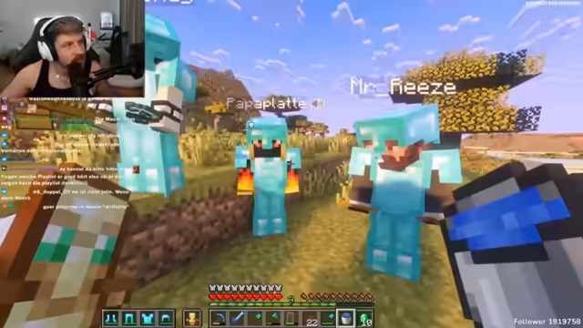 00:10:33Die Aktivitäten konzentrieren sich auf das Sammeln von Ressourcen, insbesondere Kupfer, für den Level-Up-Prozess. Der Streamer und seine Mitstreiter wie Chef Strobel sammeln fleißig Blöcke. Die Szene zeigt den gemeinsamen Anstrengungen und den spielerischen Wettbewerb um Ressourcen. Gleichzeitig erwähnt der Streamer den Bau einer Gunpowder-Farm als strategische Verteidigungsmöglichkeit gegen eventuelle Angriffe von anderen Spielern.