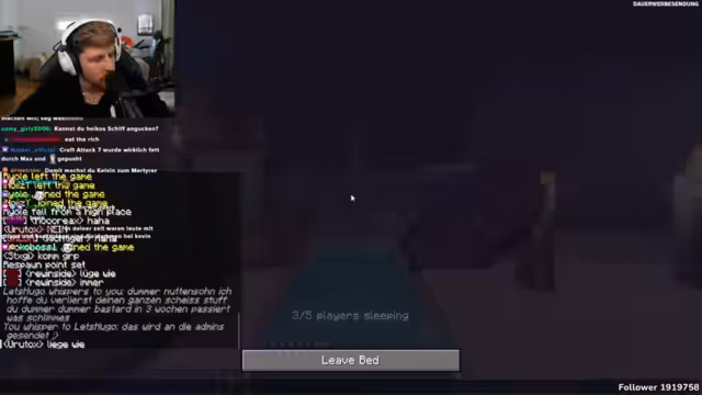 02:55:16Der Streamer gerät in einen hitzigen Disput mit einem Zuschauer namens Sebastian, dem er vorwirft, zu langsam beim Bauen zu sein und als Lohnsklave fungieren zu lassen. Die Konfrontation eskaliert, als Sebastian den Streamer beleidigt, woraufhin dieser andeutet, die Zusammenarbeit zu beenden. Zudem werden humorvolle und grenzwertige Aussagen über Themen wie Drogenhandel, Inkontinenz und Stream-Awards getätigt, die die unkonventionelle Art des Streams unterstreichen.