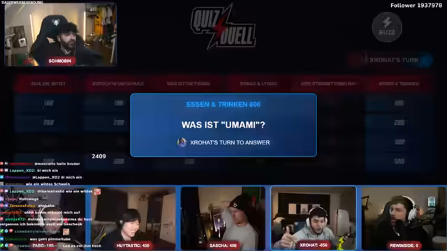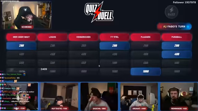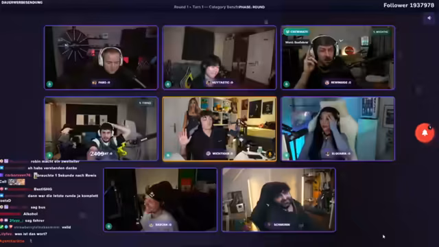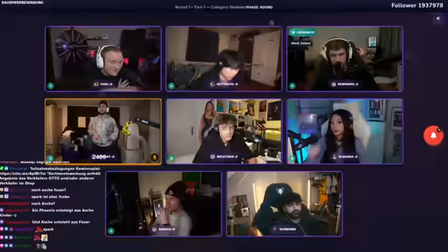 00:06:15Der Streamer möchte direkt ins Quiz einsteigen, doch es kommt zu technischen Schwierigkeiten. Teilnehmer wie Revi können nicht sofort im Spiel erscheinen und es müssen verschiedene Problembehebungsschritte durchgeführt werden. Nachdem alle Teilnehmer beigetreten sind, muss das Spielformat auf Fullscreen umgestellt und die Seite neu geladen werden. Schließlich startet das Quiz mit dem Format 'Witz-Duell', bei dem den Teilnehmern Begriffe aus einer Kategorie vorgegeben werden und diese passende Fragen dazu formulieren müssen.