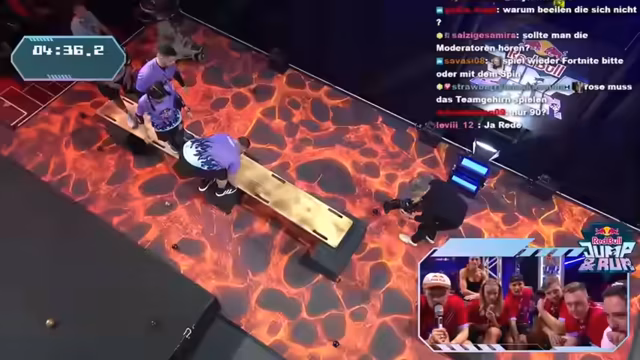 00:20:03Der Stream beginnt mit der Begrüßung des Publikums in Köln, wo alle als Teil der Gemeinschaft gefeiert werden. Die Moderatoren Janine Michael Esen und Imke Salander stellen sich vor und leiten in die Red Bull Jump & Run Veranstaltung ein. Sie betonen, dass es neben der körperlichen Fitness auch um Gamification, Köpfchen und Teamleistung geht. Vier Teams werden vorgestellt, die in unterschiedlichen Disziplinen gegeneinander antreten. Teams Amar, No Way, Rewi und Papa Platte stellen sich mit ihren Mitgliedern und teilweise ihrer Strategie vor. Der Parcours, der Land, Luft und Wasser umfasst, wird als anspruchsvoll beschrieben, und die Möglichkeit, Coins zu sammeln, wird als entscheidender Vorteil für das Finale erwähnt.