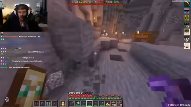 01:44:55Die Spieler stellen fest, dass kaum noch jemand auf dem Server schläft und Tintenfische Mangelware sind. Anschließend beginnen die Vorbereitungen für ein bevorstehendes Event, das geheim gehalten wird. Alphastein, der als Geschäftspartner vorgestellt wird, benötigt dringend Ressourcen wie Netherite für seine Spitzhacke, Dias und Totems. Es wird humorvoll angemerkt, dass Alphastein „wie ein Penner in diesem Berg wohnt“ und seine Wohnung renoviert werden sollte. Der Streamer verspricht Alphastein Unterstützung und betont die Wichtigkeit des gemeinsamen Events. Es wird auch über die Ästhetik der Stadt von Papa Platte diskutiert, die als unpassend empfunden wird. Die Beschaffung von Netherite wird zu einer Priorität, um Alphasteins Ausrüstung zu verbessern, da er noch eine Diamant-Spitzhacke besitzt. Auch eine Elytra wird für Alphastein vorbereitet, wobei ein Unbreaking-Villager für die Verzauberung gesucht wird.