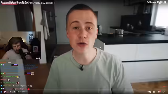 00:17:33Der Streamer reagiert auf ein Video von Marvin Wildhage, der sein Bundesverdienstkreuz zurückgibt. Er entscheidet sich, ebenfalls das ihm zugesandte Kreuz zurückzugeben. Er fährt nach Berlin zum Schloss Bellevue, um es persönlich abzugeben, und dokumentiert den Versuch. Nachdem die Polizei zunächst ratlos ist, erhält er den Hinweis, es unter der Woche im Bundespräsidentenamt abgeben zu können. Dies initiiert eine eigene Aktion, die auf Instagram begleitet wird.