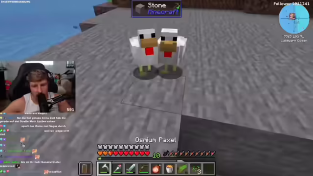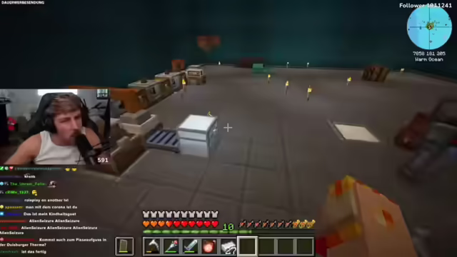 02:19:49Es wird ein Wave-Fight gestartet, bei dem Tiere und Zombies spawnen. Es wird überlegt, den Kampf im Keller zu veranstalten. Es werden Sacktenen und Inferium erhalten. Es wird gehofft, dass keine Alice Weidel spawnt. Es werden Kofi-Beans erhalten. Es wird überlegt, ob auch gute Tiere spawnen. Ein neurotischer Farmer wird entdeckt. Es wird überlegt, die Tiere im Keller zu farmen oder eine Farminsel zu bauen. Es wird ein Loch gebaut, um die Tiere einzufangen. Es wird festgestellt, dass viele Tiere sterben. Es wird beschlossen, einfach neue Tiere zu spawnen. Dieter und Edgar werden gespawnt, aber Dieter wird umgebracht. Es werden Seeds benötigt. Es wird überprüft, ob die erste Seite der Quest abgeschlossen ist. Ein new type of smelter wird benötigt. Es wird überlegt, die Quest zu überspringen. Netherquads Seeds werden erhalten. Es wird dunkel und ein Geistermann taucht auf der Insel auf. Es wird festgestellt, dass Flaute bei einer Autogrammstunde von Boris Becker herrscht. Es wird über die Ticketverkäufe für eine Party diskutiert. Es werden Hühner Seeds benötigt. Kerstin Ott wird gegrüßt.