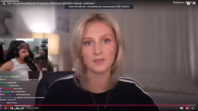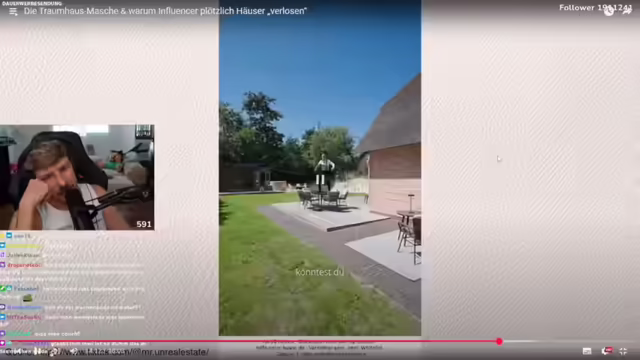 00:45:26Der Streamer kündigt an, dass Papaplatte bald online sein müsste. Er will sich mit den Zuschauern die Traumhausmasche ansehen und warum Influencer plötzlich Häuser verlosen. Er selbst wird kein Haus verlosen. Er kritisiert, dass ihm seit Wochen immer wieder Videos in den Feed gespült werden, in denen man ein hochwertiges und neues Haus gewinnen kann. Er fragt sich, wie das funktionieren soll. Er kritisiert, dass mit jeder Teilnahme Plan International Deutschland unterstützt wird. Er befürchtet, dass es sich um Scamming oder Whitewashing handelt. Er kritisiert, dass man Lose kaufen und warten muss, bis man angerufen wird. Er fragt sich, wie seriös das Ganze ist. Er kritisiert, dass Glücksspiel als etwas Gutes getarnt wird. Er fragt sich, was man Gutes tut und wohin das Geld geht. Er kritisiert, dass die Videos für Männer sich nicht von alleine finanzieren. Er kritisiert, dass er nur 10% weibliche Zuschauer hat.