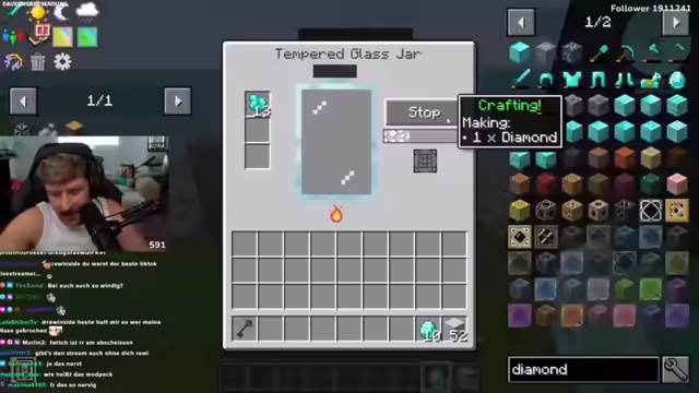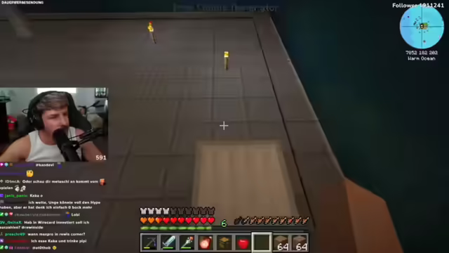 01:38:07Es wird festgestellt, dass nur 25 Diamanten vorhanden sind und die Herstellung von Diamanten vergessen wurde. Der Plan, im Nether Blazerots zu finden, wird als "Insane Poggers" bezeichnet. Es wird überlegt, wie Diamond Cluster verarbeitet werden müssen, ob durch Verbrennen. Der TikTok-Livestreamer wird gelobt, aber es wird auch erwähnt, dass es Probleme mit Twitch gibt, insbesondere Lags bei Streams mit über 10.000 Zuschauern. Es wird vermutet, dass dies an zufälligen Serverzuweisungen liegen könnte. Ein Kommentar über jemanden, der in der Öffentlichkeit "crashout" gegangen ist, wird als lustig empfunden, da dies als "Public Server" bezeichnet wurde. Der Streamer äußert sich abfällig über den "poke my eyeballs with a spoon and put them in my ass challenge" TikTok-Trend. Es wird beschlossen, ein Schild zu craften und eine Diamanthose herzustellen. Der Satz "Micky, ich will Crack kochen!" wird geäußert.
