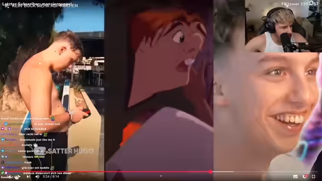03:01:46Im Stream wird zunächst ein persönliches Erlebnis geteilt: ein heftiger Fahrradunfall in Italien, der zu einer Gehirnerschütterung und 2 Millionen Aufrufen führte. Der Unfall wurde von Vodafone gesponsert. Anschließend reagiert der Streamer auf diverse YouTube-Fails, wobei er sich besonders für humoristische Fahrradunfälle wie einen von 'Let's Hugo' begeistert zeigt. Die abenteuerliche Fahrt, bei der fast eine Kuh angefahren wird, und die Gefahr, bei der die Bremsen versagen, werden als besonders krasse Momente des Streams bezeichnet.