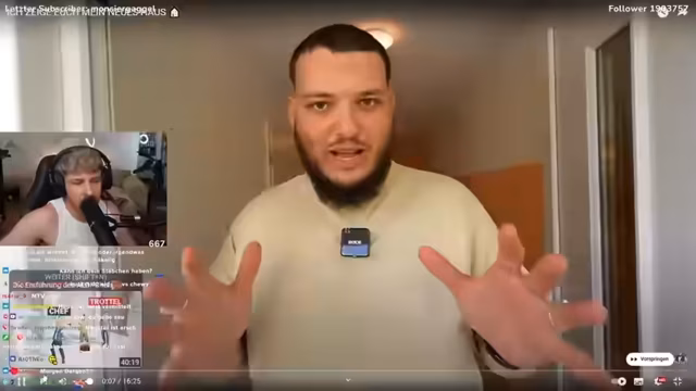 00:11:14Nach humorvollen und abfälligen Reaktionen auf TikTok-Tutorials zur Haarpflege und ein vermeintliches Easy Fluffy Hair Tutorial mit Mehl und Salz, welches er als „tot“ und „Dreck“ bezeichnet, geht der Streamer zu persönlichen Themen über. Er erwähnt eine neuerliche Nachricht: Er darf theoretisch für einen Tag und drei Stunden ins Gefängnis, da er in Österreich über eine blinkende gelbe Ampel gefahren ist. Er diskutiert humorvoll die absurde Strafe von 60 Euro oder dem Knastaufenthalt und äußert Bedenken, aufgrund seiner Verfassung im Gefängnis „rumgereicht zu werden“.