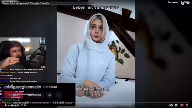 02:21:37Ein wichtiges Aufklärungsziel des Streamers ist ein FaceTime-Gespräch mit Georgia. Dieses fand in einer realen, freundschaftlichen Situation statt. Sie hatte ihn in einem extrem emotionalen Moment wegen eines Song-Release angerufen und um mentalen Support gebeten. Während des Gesprächs bat sie ihn, dieses aufzuzeichnen. Der Streamer weist darauf hin, dass die besprochenen Themen traumatische Hintergründe hatten, von denen Georgia ihm erzählt hatte, auch wenn Kim in einer Sprachnachricht einen anderen Grund nennt.