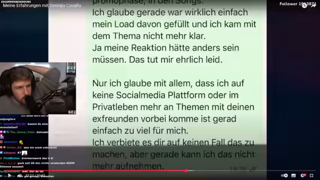 00:20:44Der Streamer beginnt mit der Analyse des Tim-Jacken-Videos, in dem es um eine Beziehungsaufarbeitung geht. Er erläutert die drei Kernpunkte: die kurze Trennungsphase, die Benennung von Georgia mit ihrem echten Namen Marie und das Vorhaben, Verhaltensmuster aufzuzeigen, um Behauptungen zu entkräften. Er ruft zu Fairness und ohne Vorverurteilung auf.