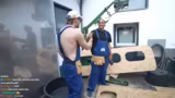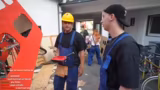 00:36:27Die eigentliche Scharnierkonstruktion des Doppeldecker-Bus-Rahmens beginnt. Zunächst scheitern die Bemühungen, eine gerade und saubere Schnittkante am Metallrohr zu erzeugen, was zu Unzufriedenheit und gegenseitigen Vorwürfen führt. Der Streamer kritisiert Hugo, der sich als unhandlich erweist und den Arbeitstisch beschädigt. Auch das Anzeichnen der Position für die Verbindungselemente zu den Rohren gestaltet sich schwierig. Die Zusammenarbeit ist spannungsreich, und der Streamer zweifelt anhandwerklichen Fähigkeiten seines Teamkollegen Hugo, während er selbst ebenfalls Mühe hat, präzise zu arbeiten.