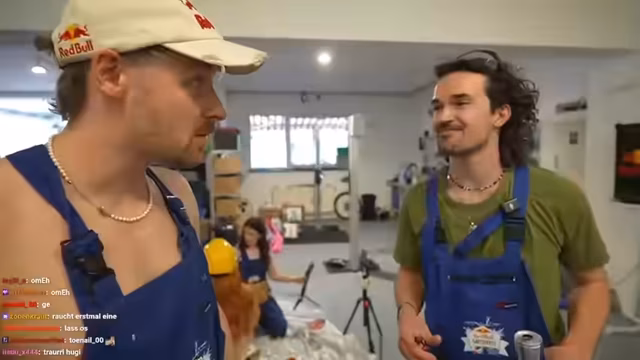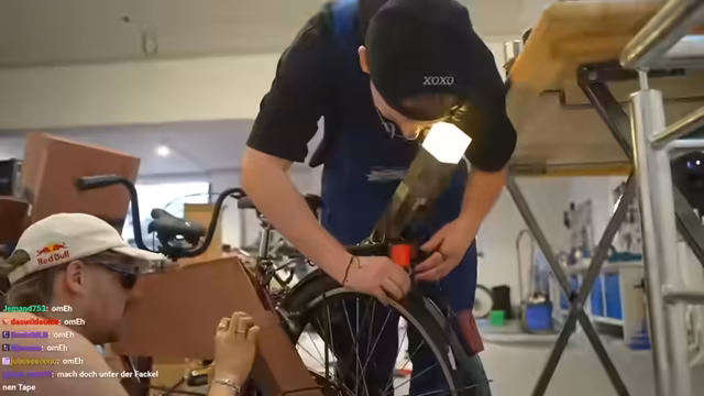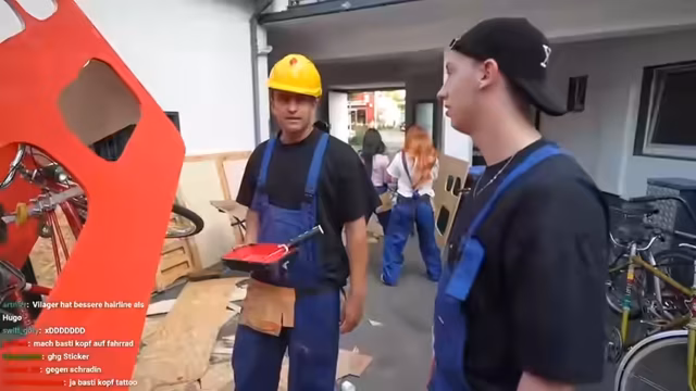 02:41:52Der Stream beginnt mit Unordnung und gegenseitigen Vorwürfen. Nach nur einer Abwesenheit des Streamers entsteht ein Chaos, bei dem Hugo den Boden bemalt hat, was zu heftigen Diskussionen führt. Gemeinsam versuchen sie, die entstandene Unordnung zu bewältigen, während Hugo mit verschiedenen Problemen beim Bau des Fahrrads zu kämpfen hat und versehentlich wichtige Teile beschädigt. Die anfängliche Euphorie wechselt in Frust über die handwerklichen Schwierigkeiten und die Missverständnisse im Team.