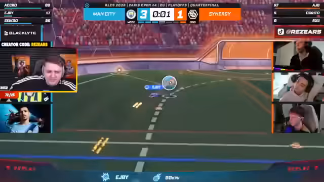 01:19:56Während des Streams werden mehrere professionelle Rocket League-Matches live kommentiert, darunter Spiele von Man City gegen Synergy und Nipp. Der Streamer analysiert die Leistung der Teams, diskutiert strategische Fehler wie zu langsame Defense von Synergy und gibt Einblicke in den aktuellen Stand des Wettbewerbs. Parallel dazu wird eine Wettseite im Stream beworben, auf der Zuschauer auf die Ausgang der Spiele wetten können, was das interaktive Erlebnis erweitert.