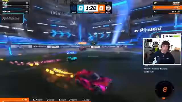 00:07:13Der Streamer gelangt endlich in den Rocket-League-Stream von Rez und ist sichtlich aufgeregt. Er muss noch einige technische Einstellungen vornehmen, wie das Öffnen des Restchats und das Wechseln in den Cinema-Modus. Er ist jetzt voll im Geschehen und kommentiert die laufenden Spiele intensiv, während er gleichzeitig auf die Leistungen der Spieler reagiert.