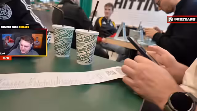 01:46:06Das Team steht in der K.o.-Phase und hat das Top-8-Ziel erreicht. Norwegen hat geholfen, das Team im Turnier zu halten. Nach dem Spiel geht es zu einer Essenpause in einem Wingstop, ein lang ersehntes Versprechen des DFB. Währenddessen stellt der Streamer fest, dass nicht alle Teammitglieder an der Aktivität teilnehmen. Die Teammitglieder genießen das Essen und planen den weiteren Verlauf des Abends.