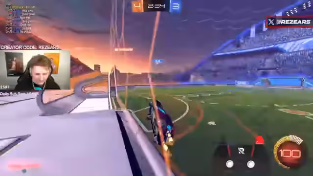 03:06:48Nach dem Showmatch analysiert der Streamer seine eigenen Schwächen in Kickoffs gegen Jack und erkennt, dass er bei seitlichen Kickoffs anders vorgehen muss. Parallel dazu wird ein hohes Ranked-Rating erreicht und das Ziel, Top 20 der Welt zu werden, erwähnt. Die Community wird aufgefordert, Follows zu hinterlassen, da dies dem Kanal extrem hilft. Auch ein bevorstehendes Giveaway auf Instagram für einen signierten PS5-Controller wird angekündigt.