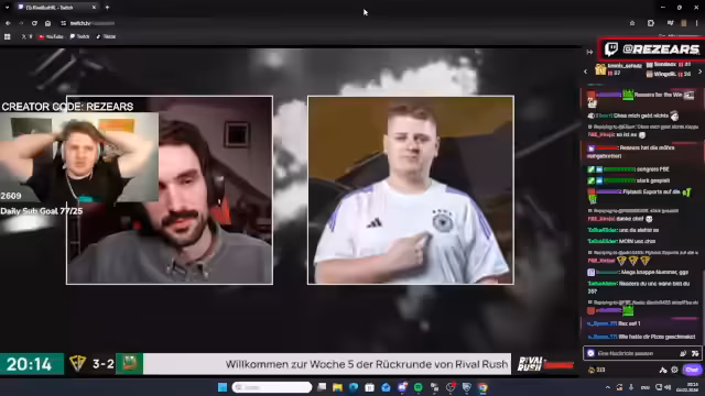 00:00:14Der Stream beginnt mit der Begrüßung der Zuschauer. Es werden zahlreiche Namen genannt, um die Community willkommen zu heißen. Der Streamer erwähnt, dass er vorhat, für das bevorstehende Rival-Rush-Event zu üben und dass sie aktuell ungeschlagener Erstplatzierter in der deutschen Liga sind. Gleichzeitig wird auf die Ankunft einer neuen Kamera hingewiesen und er wünscht sich, bald den Unterschied zur alten Cam sehen zu können.