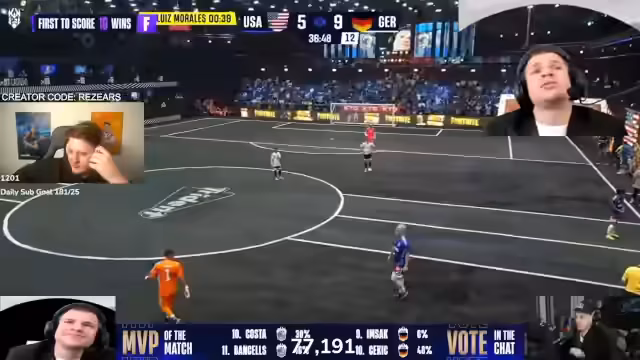 00:40:24Während eines aktuellen Ranked-Spiels analysiert der Streamer die Leistung seines Teams und die Spielzüge des Gegners. Er äußert Frustration darüber, dass sein Team trotz vieler Angriffe nicht zum Erfolg kommt und gegnerische Pässe oft ohne Gegenwehr funktionieren. Er diskutiert die Notwendigkeit, seine Teammates zu verbessern und selbst fokussierter zu spielen, anstatt im Chat zu aktiv zu sein, um die Leistung nicht zu beeinträchtigen.