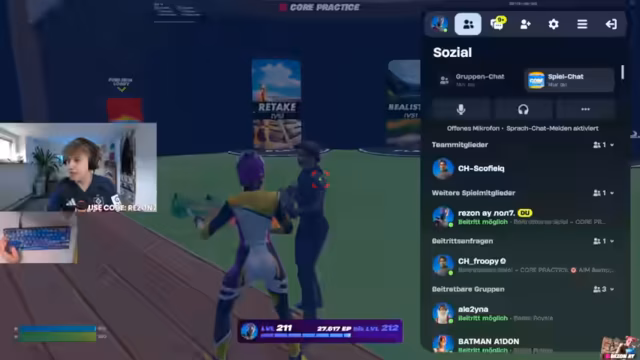00:03:38Um an den 1v1s teilzunehmen, erklären die Zuschauer, wie sie die Core-Practice-Map finden können. Dazu müssen sie im Creative-Modus die Lupe öffnen und 'Reason' eingeben, um zur dritten Map zu gelangen. Anschließend wird empfohlen, öffentlich zu queuen, um eine schnellere Verbindung zu gewährleisten. Der Streamer macht deutlich, dass es sich um ein 'First to Five'-Duell handelt, wobei jeder Kill separat 100 Euro wert ist. Das bedeutet, ein Spieler kann auch bei einer Niederlage gewinnen, wenn er mindestens einen Kill landet. Regeln wie Aim-Duels und Search-Duels werden ausgeschlossen, da der Streamer diese als 'cringe' empfindet.