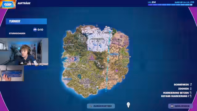01:54:00Nach der turbulenten Debatte wechselt der Streamer das Thema und wendet sich der Community zu. Er ruf die Zuschauer auf, die offizielle Discord-Server und Core-Practice-Maps zu nutzen, um ihre Fähigkeiten zu verbessern. Gleichzeitig erklärt er seinen aktuellen Fokus auf den Solo-Cash-Cup, bei dem er auf eine gute Platzierung dringend angewiesen ist, um Punkte zu sammeln. Das Ziel ist, in der Rangliste aufzusteigen und einen Turnier-Sieg zu erzielen.