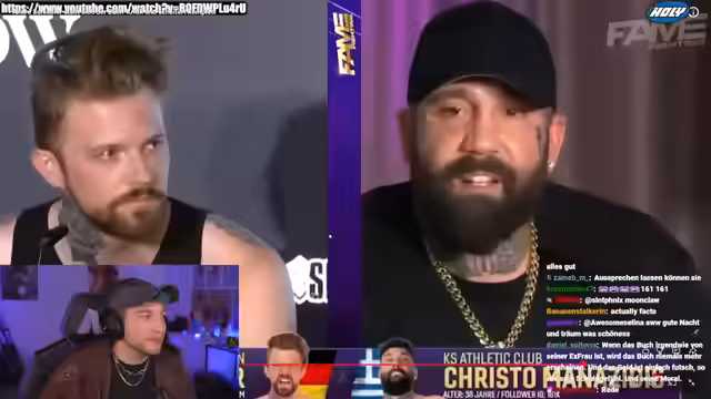 03:08:05Die Konfrontation zwischen André Schiebler und Chris von BullshitTV nimmt konkrete Formen an. Chris nutzt einen bevorstehenden Boxkampf, um Schiebler öffentlich zur Rechenschaft zu ziehen und ihn mit dem Buch-Scam konfrontieren zu lassen. Bei der Pressekonferenz ist Schieblers Argumentation jedoch schwach und er versucht, die Vorwürfe mit Verweis auf private Schicksalsschläge wie den Tod von Eltern und eine psychische Krise seiner damaligen Frau abzuwehren. Rezo bewertet dies als manipulativ und als Ausweichmanöver.