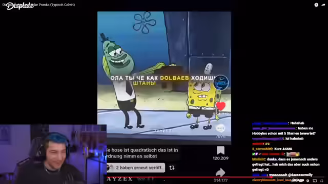 00:59:07Es wird auf den Vorwurf eingegangen, dass eigene Inhalte fehlen und stattdessen nur auf Inhalte anderer reagiert wird. Für Besucher von Aachen wird der Bushof als schöner Ort mit viel Natur und Entspannung empfohlen. Anschließend wird ein weiteres Video besprochen, in dem ein Mann Dosen für einen Euro verkauft, um sich ein MacBook zu finanzieren. Es wird die Glaubwürdigkeit des Videos infrage gestellt und vermutet, dass der Mann das MacBook möglicherweise nicht erhalten hat. Es wird ein Vergleich zu MrBeast gezogen, der manchmal Menschen Geld schenkt, die sich nicht übermäßig freuen, weil sie introvertiert sind. Es wird eine Geschichte über Bitcoin erzählt, bei der jemand für 1000 Bitcoin eine Pizza gekauft hat, als Bitcoin noch fast wertlos war, was heute ein Vermögen wert wäre. Abschließend wird die Möglichkeit genutzt, die aktuelle Raumtemperatur zu erwähnen, und es wird betont, dass die gezeigten Pranks zwar funktionieren, aber persönlich nicht lustig gefunden werden. Es wird ein russisches Spongebob-Video-Meme mit falscher Übersetzung gezeigt und die Reaktion darauf im Chat kommentiert. Es wird festgestellt, dass der Job teilweise darin besteht, sich Videos anzusehen, in denen Leute andere Leute "pranken", wobei die "Pranks" aber nicht echt sind, und darüber zu reden.