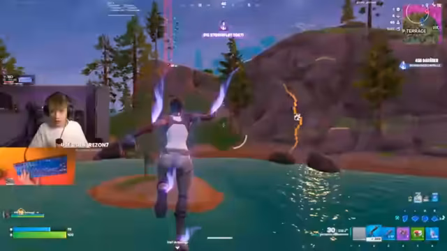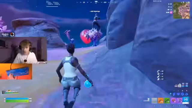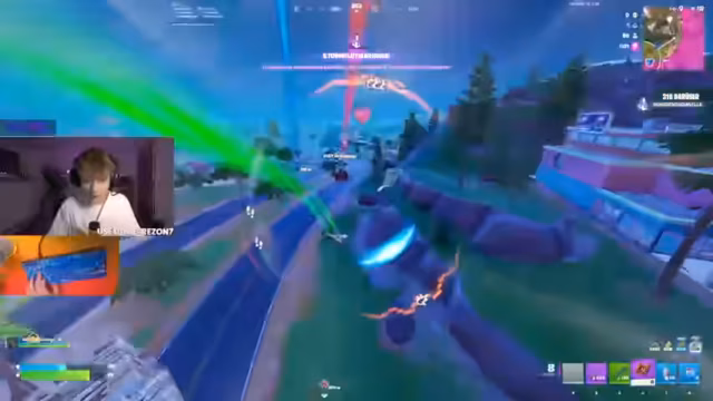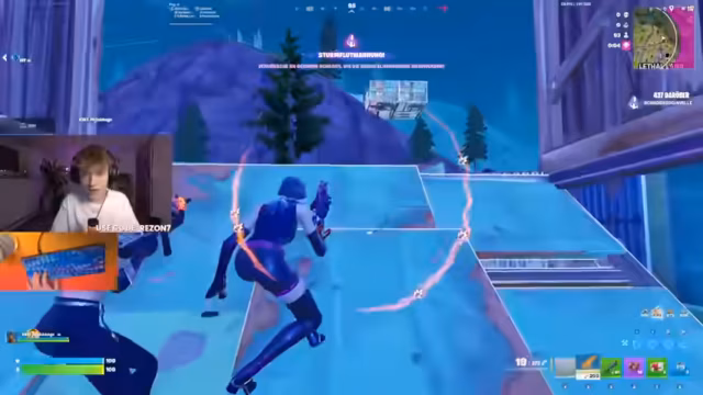 01:57:31Nach der anfänglichen Landung verschiebt sich der Fokus auf taktische Bewegungen und Kämpfe. Der Streamer und sein Team bewegen sich durch die Spielwelt, um andere Teams zu finden oder der Gefahr aus dem Weg zu gehen. Es kommt zu mehreren Feuergefechten, bei denen Positionierung, Bauwerkzeuge und Waffenauswahl eine entscheidende Rolle spielen. Kommentare deuten auf Stress und schnelle Entscheidungen während der Kämpfe hin.