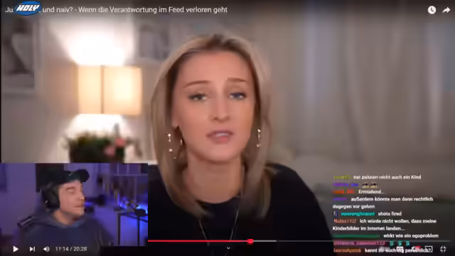 01:08:14Das Hauptthema des Streams ist die Debatte über TikTok-Paare, die ihre Babys im Internet zeigen. Ausgangspunkt ist ein spezifisches Paar namens Lala und ihr Partner, die dafür stark kritisiert werden. Die Influencer rechtfertigen ihr Handeln mit dem Argument der elterlichen Autonomie und dem Vergleich zu Alltagsrisiken wie Autofahren. Rezo analysiert die Statements der Eltern und kritisiert deren Argumentation als unzureichend und ablenkend. Er betont, dass es nicht um kommerzielle Vermarktung gehe, sondern um die langfristigen digitalen Spuren und das Recht auf Privatsphäre des Kindes.