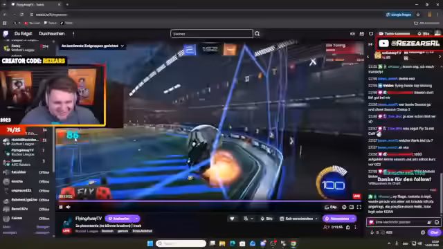 03:13:12Ein Chat-Mitglied fragt nach dem genauen Aufbau des bevorstehenden Turniers. Der Streamer gibt eine detaillierte Erklärung, die von der Qualifikation über das Double-Elimination-Bracket bis zu den Top-16-Europa finalen reicht. Er beschreibt den Zeitplan für jeden Tag des Wochenendes und die zu erwartenden Spieleanzahl. Zusätzlich spricht er über die verschiedenen Spielmodi wie Air-Dribble und die Notwendigkeit, sich auf verschiedene Gegnertypen vorzubereiten, was sein tiefes Verständnis für die Wettbewerbsszene zeigt.