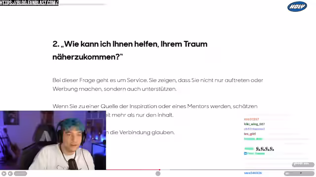 Im Fokus des Streams stand der Betrugsskandal um das Unternehmen Fanblast. Mittels Expose-Videos wurde gezeigt, wie das Influencer-Telefonnummern an Agenturen verkauft hat, um im Namen der Creator teure Chats mit Fans zu verlangen. Die Veröffentlichung der offiziellen Statements durch Fanblast wurde scharfe Kritik gelesen. Diese wurden als äußerst heuchlerisch und oberflächlich verurteilt, da keiner der strukturellen Probleme des Geschäftsmodells anerkt wurde.