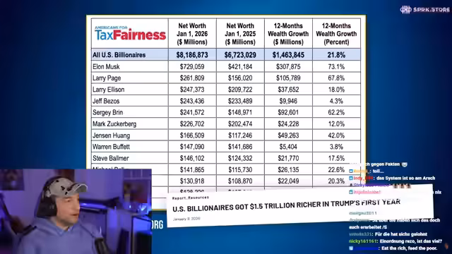 02:09:36Es wird eine massive Vermögensumverteilung in den USA unter Trumps Amtsführung analysiert. Während die amerikanische Bürger in einem Jahr 1,4 Billionen Dollar an Reichtum verloren, haben Milliardäre allein 1463 Milliarden dazu bekommen. Rezo sieht hier einen klaren Zusammenhang, dass Reichtum an der Spitze immer bedeutet, dass andere Bürger ärmer werden. Er argumentiert, dass Trump und sein Umfeld ihre politische Stellung gezielt ausnutzen, um sich persönlich extrem zu bereichern, wie es durch die Annahme teurer Geschenke von Ländern wie Katar nachgewiesen ist. Rezo schlussfolgert, dass in einer funktionierenden Demokratie Vermögen nach oben hin begrenzt werden muss, da sonst die Demokratie stirbt.