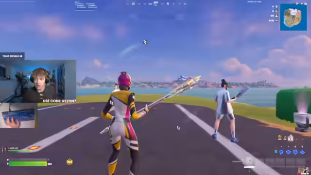 00:22:46In der späteren Phase der Runde rückt das Endgame in den Fokus. Der Streamer entwickelt Pläne, um die letzten Gegner zu eliminieren und in der Safe Zone zu überleben. Er diskutiert das Bauen von Basen, die Nutzung von Impulsen zur Flucht und das Verteilen von Ressourcen wie Pizza und Metz. Entscheidungen darüber, wann man angreift und wann man sich zurückzieht, sind für den Ausgang des Spiels entscheidend.