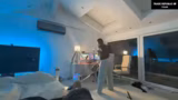 03:20:31Der Stream beginnt mit technischen Problemen wie fehlendem WLAN im oberen Stockwerk und einem defekten Zweithandy, was die Kommunikation erschwert. Der Fokus verschiebt sich schnell auf allgemeine Unordnung im Haushalt, insbesondere im Badezimmer und auf dem Zimmer. Die Streamer diskutieren darüber, wer aufräumen soll, wobei Alex angesprochen wird, während der Streamer einen Staubsauger holt und sich über den Zustand des Geräts, vermutlich ein billiges Pink-Modell, lustig macht.