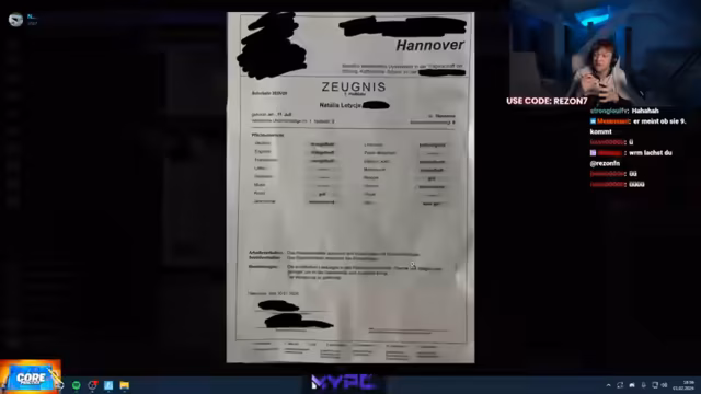 00:16:22Nach einer kurzen Spielrunde von Fortnite konzentriert sich der Streamer vollständig auf die angekündigte Reaktion von Zeugnissen. Er beginnt damit, verschiedene Notenzeugnisse der Zuschauer zu lesen und zu kommentieren. Die Noten und Fächer variieren stark, von sehr guten bis hin zu sehr schlechten Ergebnissen. Ein Zeugnis aus der Schweiz führt zu Verwirrung, da die Bewertungsskala nicht verstanden wird. Der Streamer diskutiert auch mit dem Chat über Schulsysteme, Halbjahreszeugnisse und den Zeitpunkt der Sommerferien in Deutschland.
