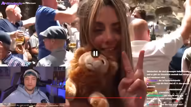 03:27:36Nach der Toboggan-Erfahrung geht es zurück ins Zelt, wo die Atmosphäre des Oktoberfests mit Bierbänken, Kellnern und bayerischer Blasmusik beschrieben wird. Es wird eine kritische Anmerkung zur Qualität des eigenen Contents gemacht, da der Streamer selbst zugibt, dass seine Witze nicht besser werden. Ein TikTok-Song wird vorgestellt, dessen unironischer Text von einer sehr expliziten und emotionalen Natur ist, was zu einer Diskussion über die Authentizität und den Ursprung des Liedes führt. Der Streamer singt den Song sogar selbst, was ihm viel Überwindung kostet und bei den Zuschauern 'Gänsehaut' hervorruft. Die Szene wechselt zu einer Rede von 'King Markus', der eine Botschaft der Freiheit verkündet, die jedoch vom Streamer kritisch hinterfragt wird, insbesondere im Hinblick auf die Freiheit vegetarische Wurst auch so nennen zu dürfen.