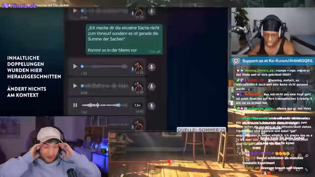 00:15:12Der Streamer beginnt mit der Reaktion auf ein Video von Kaiser mit dem Titel „Treyments ekelhafte Reaction auf Tim Jacken“. Dieses Video wurde von vielen Zuschauern und Nina empfohlen. Es geht um Treyments „unterirdische Takes“ zur TJ-Georgia-Thematik. Der Streamer erklärt, dass Treyment ein kleinerer Streamer und Meinungs-YouTuber ist, der früher als jemand mit „based Takes“ galt, aber in letzter Zeit widersprüchliche Meinungen geäußert hat. Kaiser kritisiert in seinem Video Treyments Reaktion auf TJs Video, in dem TJ seine Ex-Freundin Georgia als manipulativ und toxisch darstellt. Der Streamer erläutert, dass Georgia zuvor in Videos über schlechte Erfahrungen mit ihrem Ex-Freund gesprochen hatte, ohne TJ explizit zu nennen, die Verbindung jedoch eindeutig war. Er erwähnt, dass TJ in seinem neuesten Video viele Dinge aufgedeckt hat, die Georgia in einem anderen Licht erscheinen lassen, und dass es mittlerweile auch ein Statement von Georgia gibt, das er später im Stream behandeln möchte.