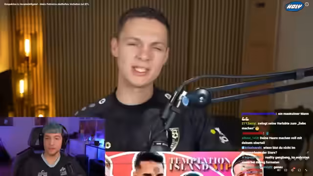 00:15:24Nachdem die technischen Hürden genommen sind, startet Rezo das angekündigte Format 'Reaction Action'. Er erklärt, dass er vier Videos betrachten möchte, die Zahl aber wahrscheinlich aufgrund von ausufernden Kommentaren nicht erreicht wird. Als erstes Video analysiert er einen Clip über Reality-Star Alex Petrovic, der aufgrund toxischen Verhaltens in Temptation Island für Aufsehen sorgt. Rezo stellt das Format und die Hintergründe des Skandals vor, um den Kontext für die Reaktion zu schaffen.